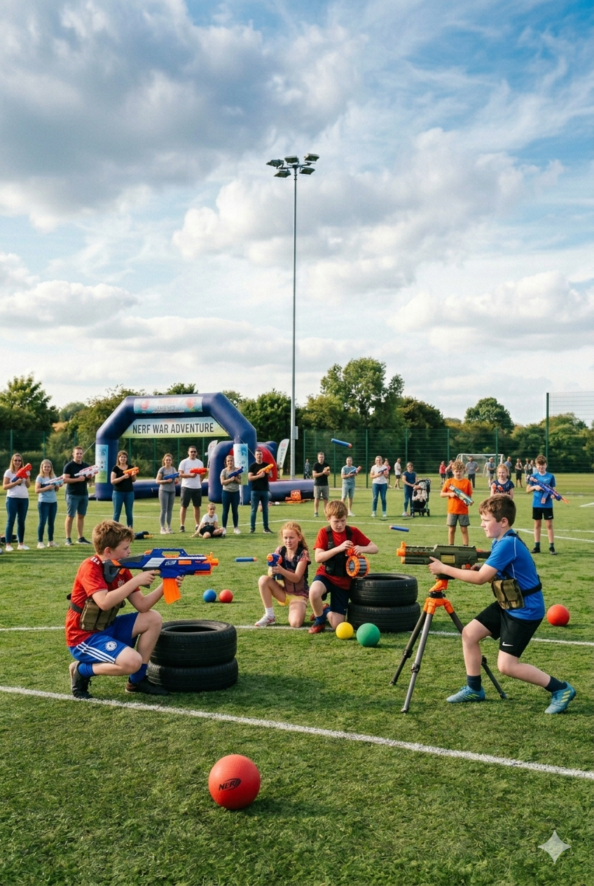 Experience fast-paced, competitive fun perfect for all ages. High-stakes challenges with the latest blasters and inflatable cover!